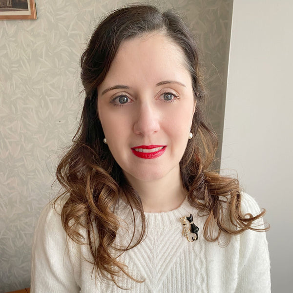 Wear your cat brooch with bright lips to make an extra-sparkling statement.