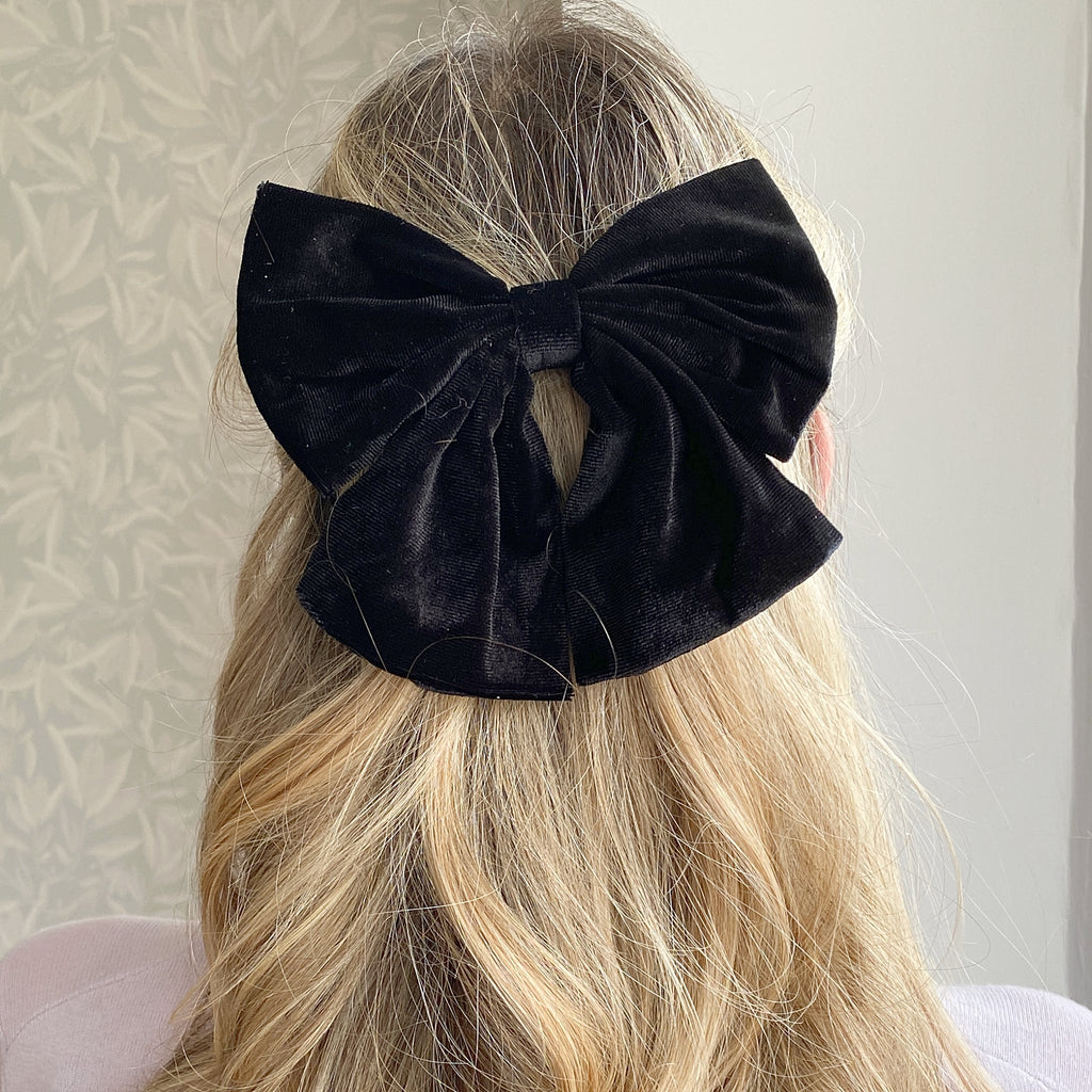 QueenMee Black Hair Bow Velvet Bow Hair Clip