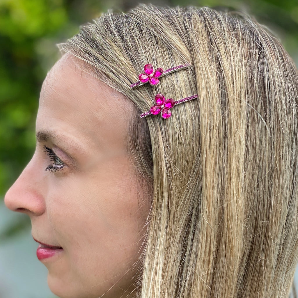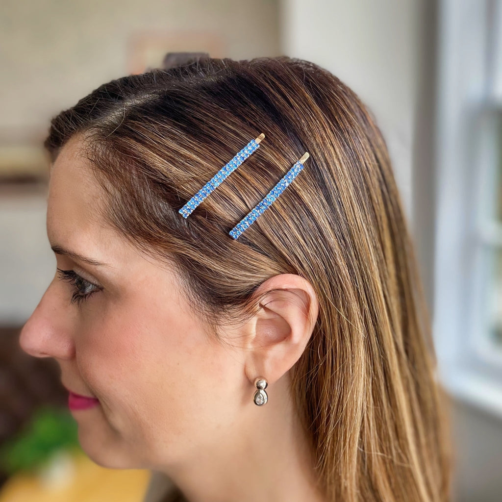 QueenMee Flower Hair Grips Flower Hair Slides Teal Sparkly Hair Grips Set of 2