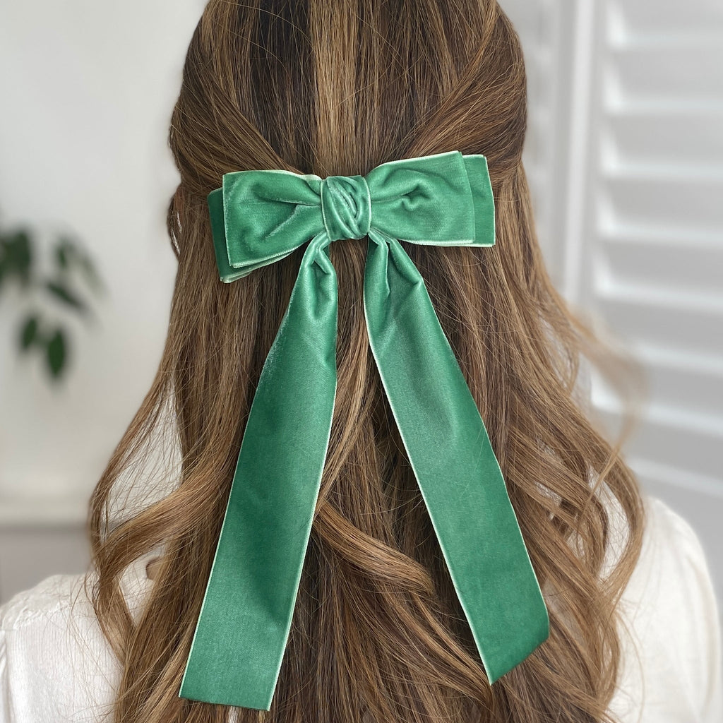 QueenMee Green Velvet Hair Bow Dark Green Hair Clip Alligator Clip
