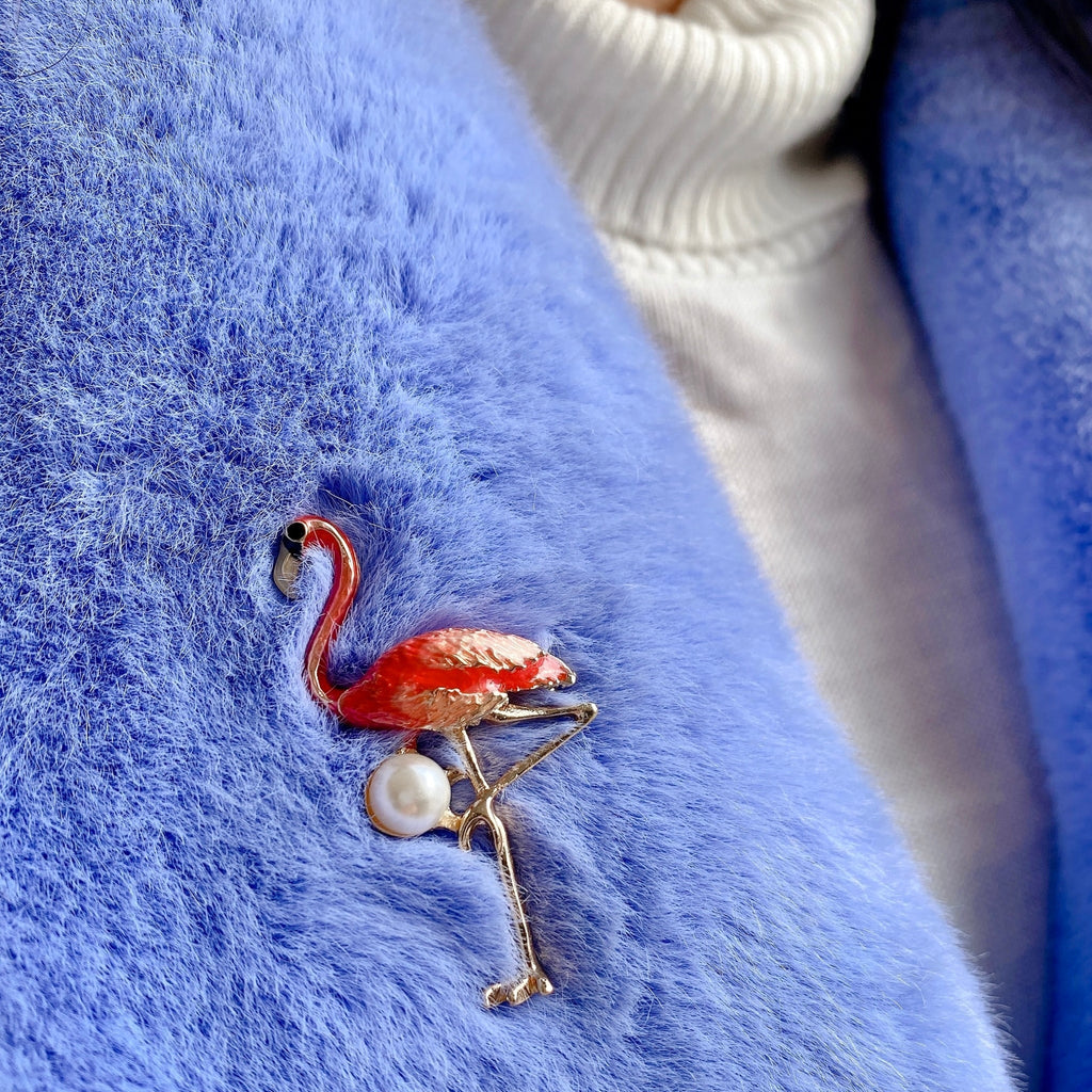 QueenMee Flamingo Brooch in Enamel with Pearl
