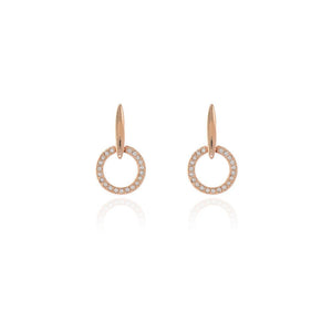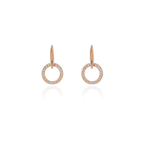 Create a real fashion statement with these elegant Halo rose gold-plated earrings, showcasing a classic circular design embellished with numerous tiny, shimmering cz stones. The exterior glistens as though it were studded with diamonds, and the polished rose gold interior offers a comfortable feel on your skin.