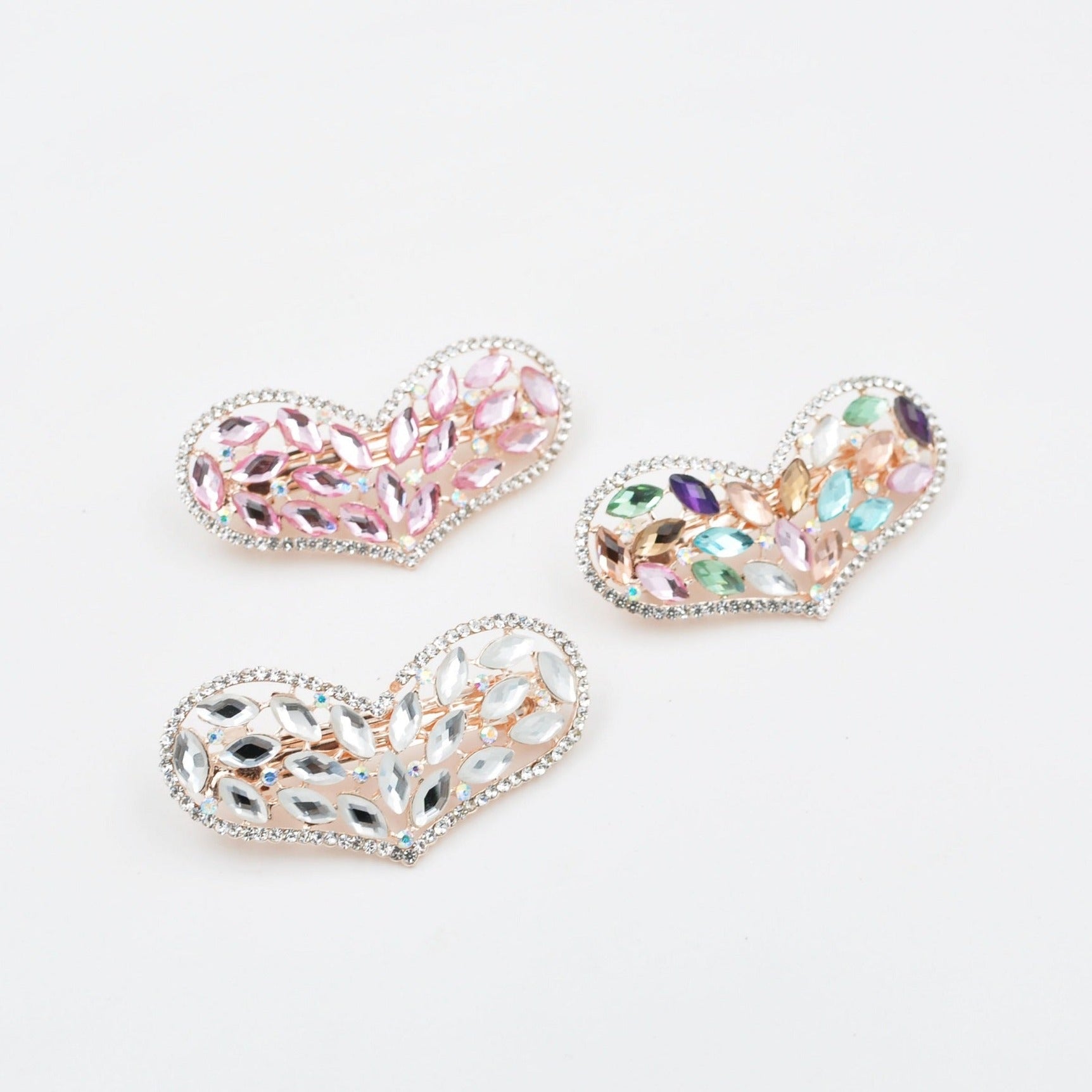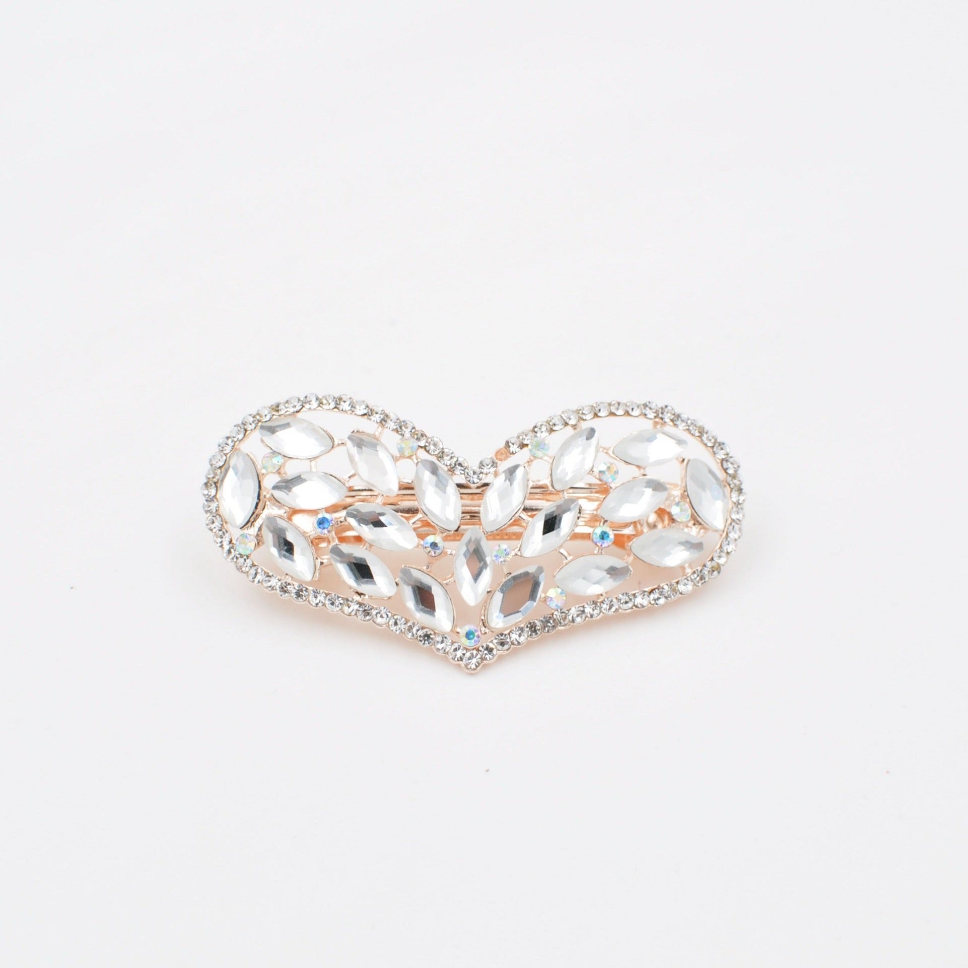This heart hair clip is crafted from two shapes of stone - with long, vintage inspired stones set in the centre of the hair clip, and tiny super sparkling diamantes around the edge of the hairclip.