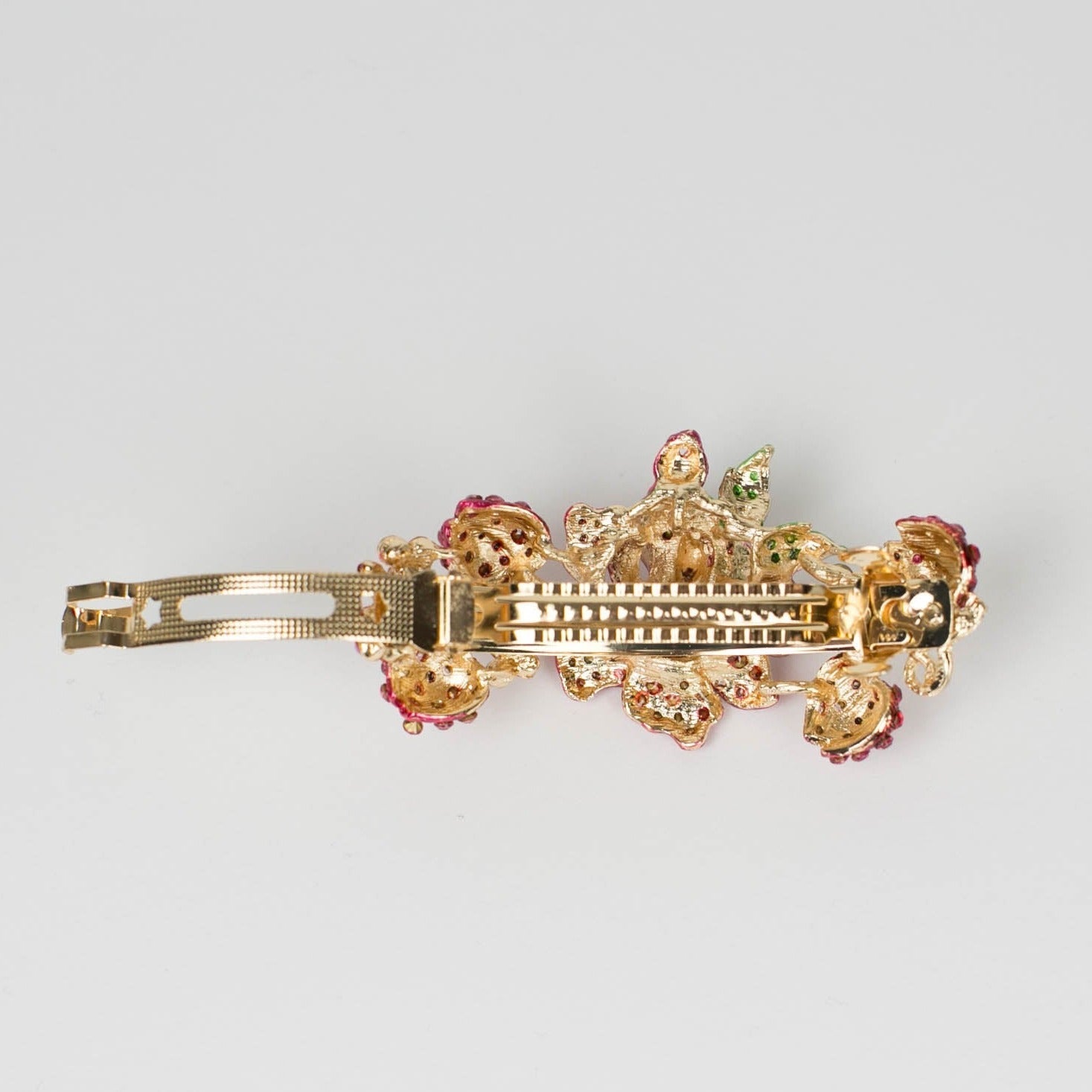 This hair accessory is a substantial piece of hair jewellery – set with dozens of colourful and sparkling diamantes, it will add instant floral decadence to your outfit.